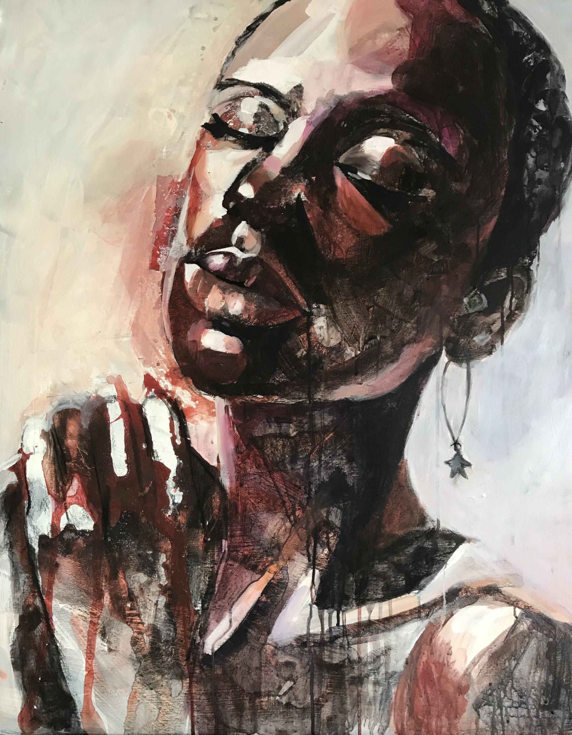 Mixed media on canvas.
