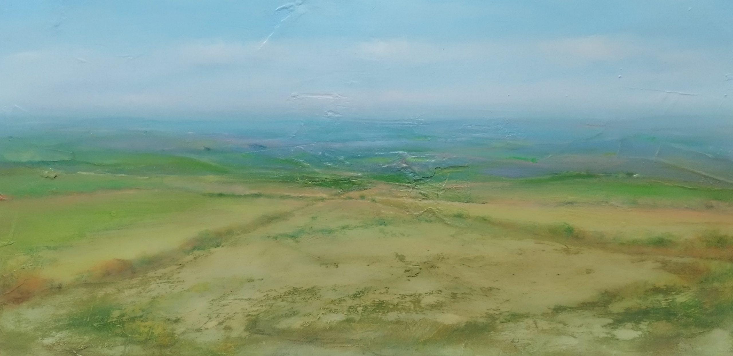 Paisaje panorámico realizado en madera reciclada cogida de un contenedor de basura.