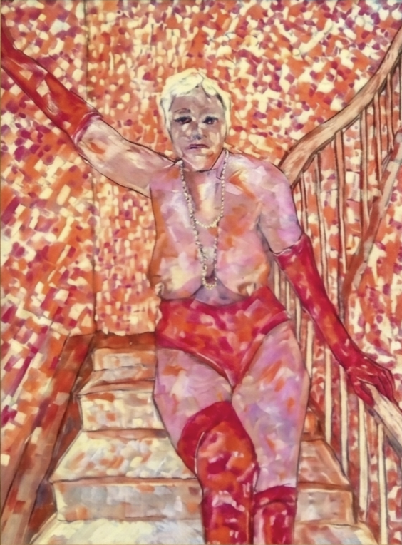 Textura y Relieve: La aplicación matérica sobre la base textil crea una superficie vibrante. El contraste entre los rojos intensos y los tonos de la piel resalta la profundidad física de la obra, haciendo que la figura parezca emerger de la composición.